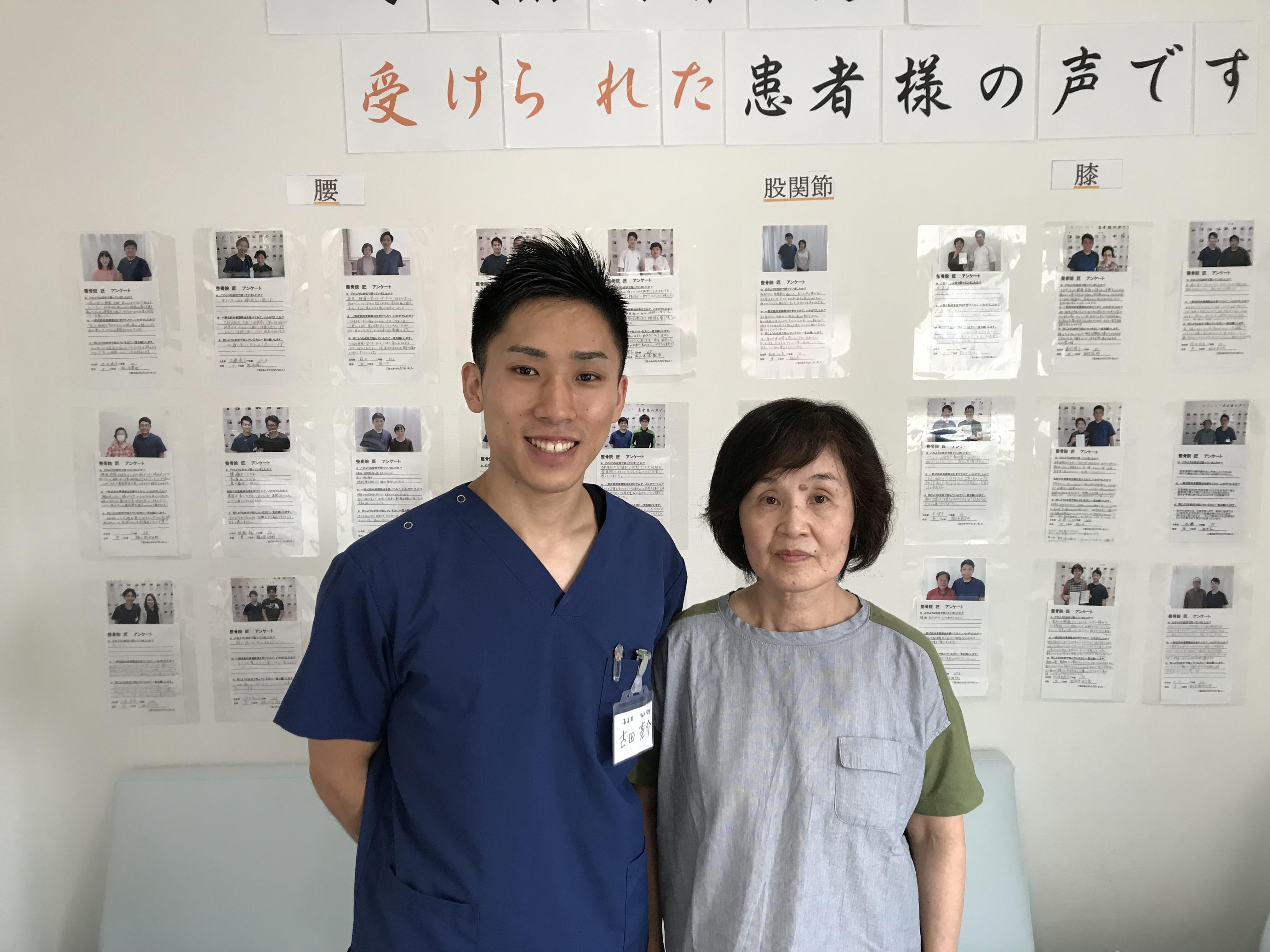 「「喜び」を体感してください!」左足のしびれと痛みで10分も歩くことができず、買い物に行っても度々座り込んでいました。 最初は不安でしたが数か月通院する内に、足のしびれが軽くなり痛みも出たり、出なかったり症状を改善してもらえて今では痛み、しびれもほとんど出なくなりました。今は体のメンテナンスもお願いしています。 痛みで気持ちが落ち込んでしまいますが、先生方が元気な体になるように施術してくれます。 (佐藤 元三さん) ※効果には個人差があります |