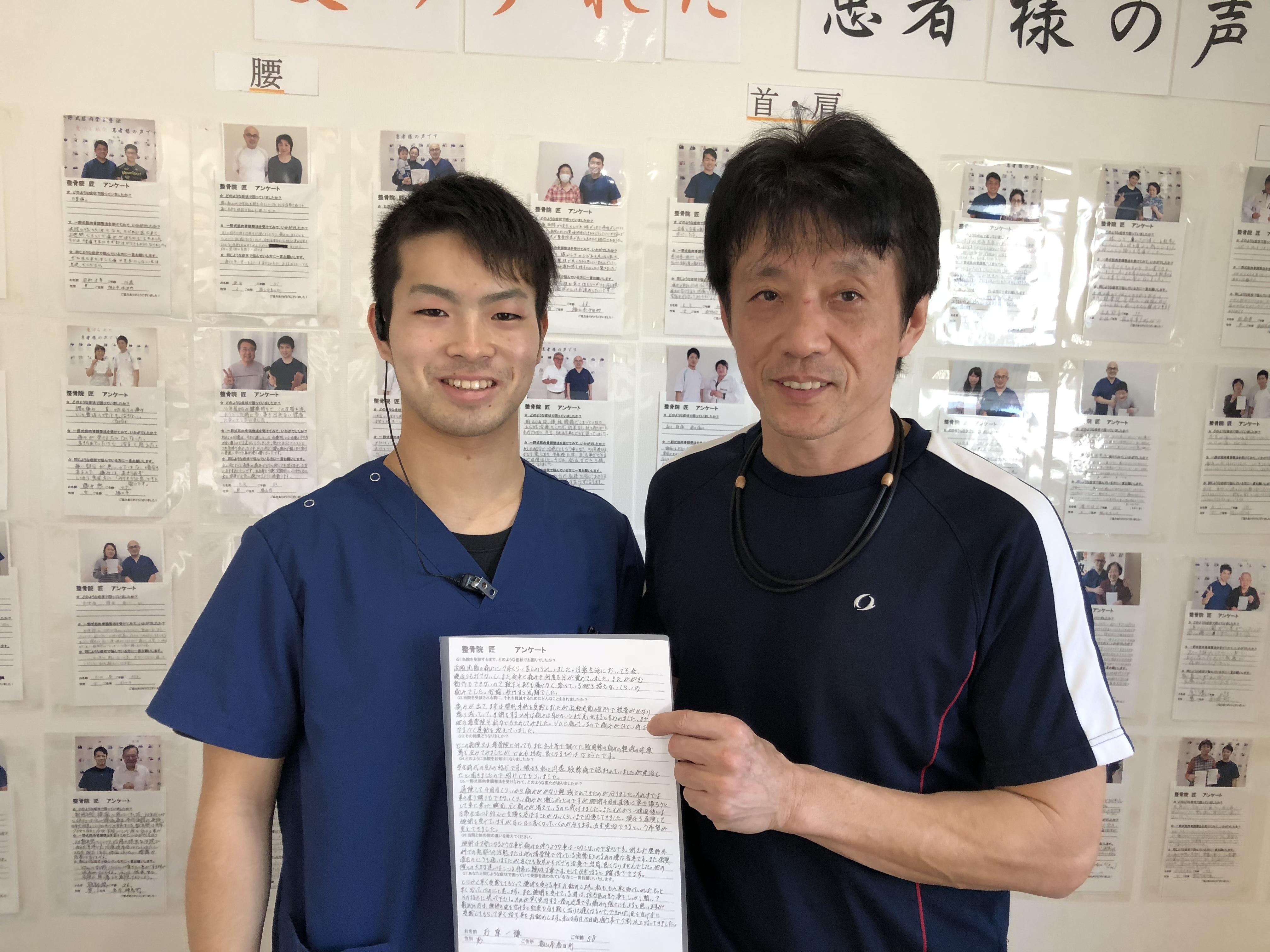 「完治できるという希望がみえてきました!!」両股関節の痛みに7年くらい苦しめられていました。日常生活においても夜寝返りも打てないし、また夜中に痛みで何度も目が覚めていました。また、かがむ動作もできないので靴下や靴も履けなく、落ちている物も拾えないくらいの痛みでした。勿論、歩行すら困難でした。 痛みが出て、まずは整形外科を受診しましたが両股関節の変形で軟骨がかなり擦り減っていて手術をする以外は痛みは引かないし、まだ悪化すると言われました。また、他の整体院や針なども試してみました。ジムに通っているので、痛みがひどい時は運動は控えていました。 どの病院、接骨院に行っても、またネット等で調べた股関節の痛みの軽減の体操等も試みてみましたが、どれも結局、良くなるものは無かったです。 通院して4回目ぐらいから痛みがかなり軽減されてきたのが分かりました。それまでは車の乗り降りも出来ないくらいの痛みが激しかったのですが、4回目の施術後に、車で帰ろうと車に乗った瞬間、全く痛みが消えているのに気が付きました。それから1週間後には、日常生活には殆ど支障を及ぼすことがないくらいまで回復してきました。現在も通院し施術を受けていますが日に日に良くなっていくのが分かります。必ず完治できるという希望がみえてきました。 とにかく早く受診してもらって施術を受ける事をお勧めします。私ももっと早く知っていれば、もっと早く治っていたのにと思います。また施術を受けているときは、先生の言うことをしっかり聞いて、その指示に従って下さい。それが早く完治する一番の近道です。痛みの強さにもよると思いますが、最初の内は施術の間を空けると効果も分かりにくく治りも遅くなるので、できれば間を空けずに受診してもらって早く治すことをお勧めします。 (石原 一謙さん) ※効果には個人差があります |